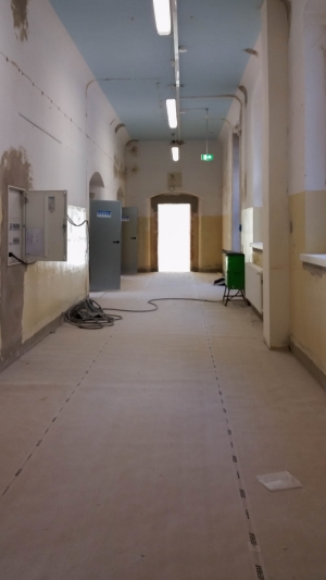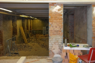 | abgetragener Boden im Kellergang zum künftigen Speisesaal